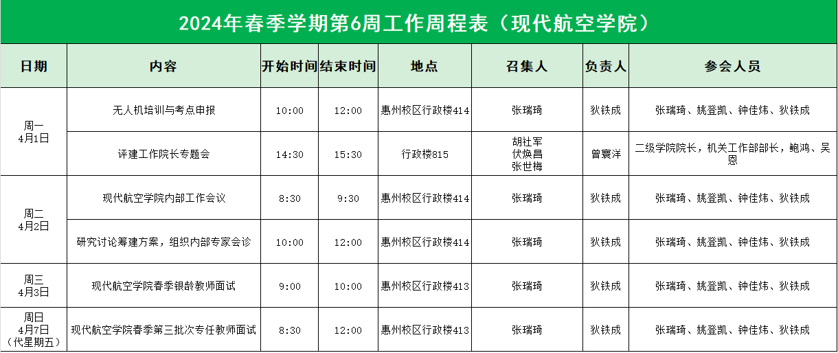 2024年春季学期第6周工作周程表