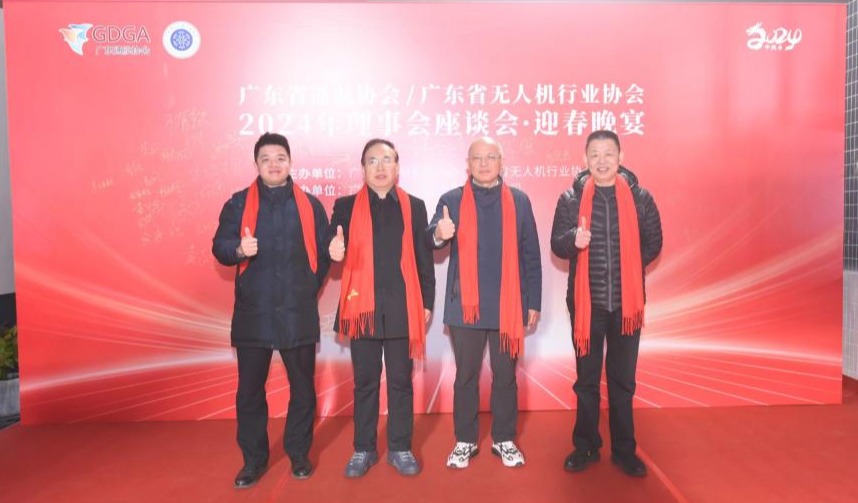 2024年1月26日,广东省通用航空协会、广东省无人机行业协会(以下简称“协会”)理事会暨迎春年会在广州圆满举办。陈汉君副董事长、张瑞琦经理、姚登凯、钟佳炜副经理四人受邀参加本次迎春年会。
