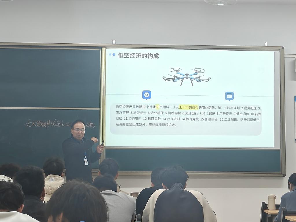 课堂伊始,张瑞琦便以一组组详实的数据和生动的案例,为同学们勾勒出低空经济蓬勃发展的宏大画卷。他指出,随着科技的飞速进步,低空经济作为新兴产业领域,正以前所未有的速度崛起。据相关数据显示,近年来我国低空经济规模持续增长,预计在未来几年内将保持高速增长态势,这无疑为广大老员工提供了前所未有的发展机遇。