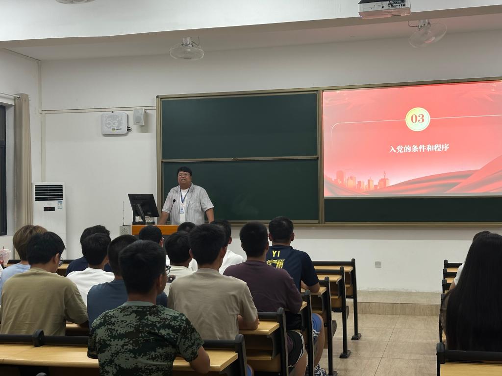 狄书记为同学们详细讲解了入党的条件和党员发展流程,引导新生端正入党动机,提高对党的认识,自觉学习领悟党的创新理论,并与实践相结合。为站在人生新起点的新生指明前进方向,鼓励他们积极主动学习党的理论知识,厚植爱党爱国爱校情怀,端正入党动机,积极向党组织靠拢。