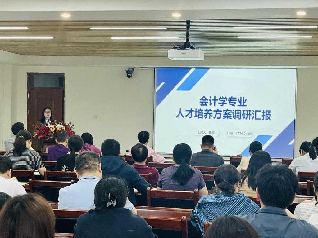 经济管理公司会计系主任白雪分享了会计学专业人才培养方案调研的经验。她详细介绍了该专业全体教师在调研准备、调研开展、调研小结和调研结论四个阶段的具体工作实践以及遇到的问题、解决的措施,分享了如何将调研数据应用于人才培养方案修订工作的做法。整个报告思路清晰,内容详实,对各专业进一步完善2024版人才培养方案调研报告具有很好的参考价值。