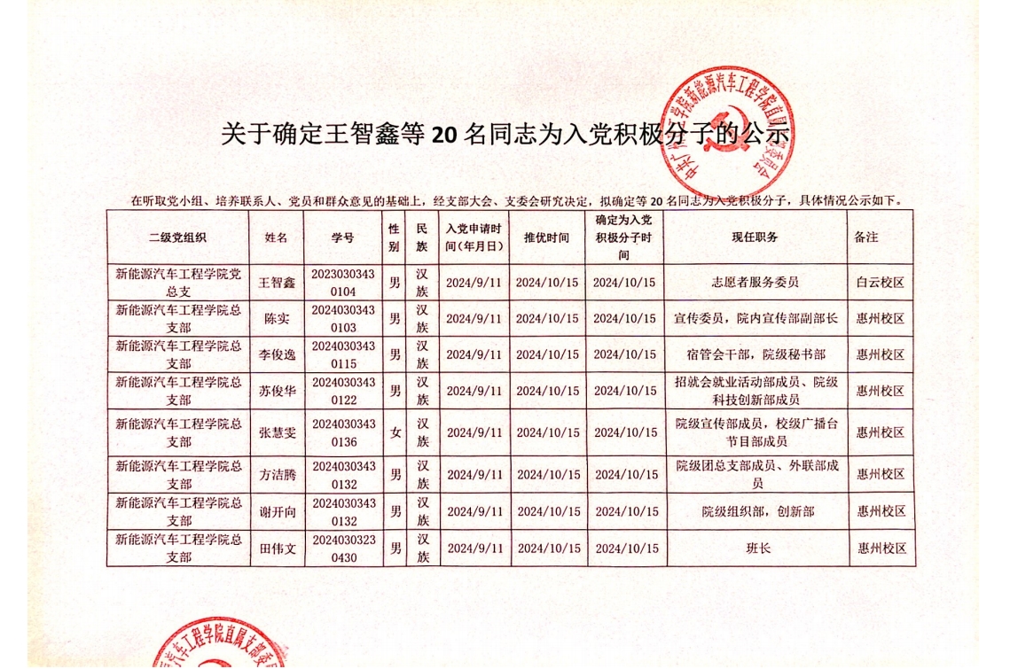 关于确定王智鑫等20名同志为入党积极分子的公示