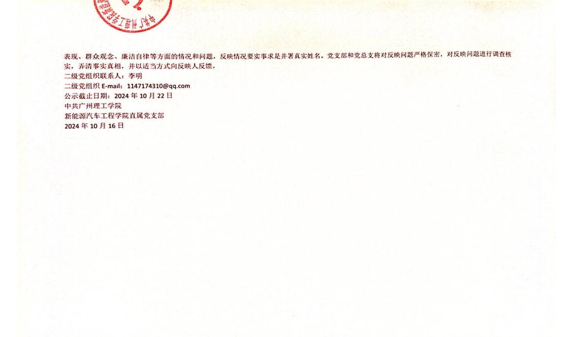 有异议者,请自本公示之日起,通过电话、电子邮件或书面形式,向党支部或党总支办公室反映入党积极分子在理想信念、政治立场、思想作风、工作表现、群众观念、廉洁自律等方面的情况和问题,反映情况要实事求是并署真实姓名。党支部和党总支将对反映问题严格保密,对反映问题进行调查核实,弄清事实真相,并以适当方式向反映人反馈。