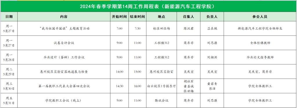 2024年春季学期第14周工作周程表(太阳成tyc7111cc)